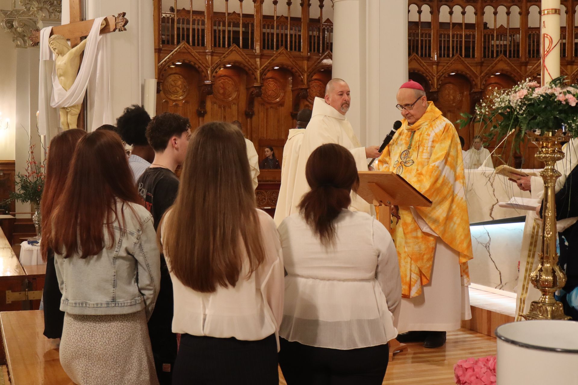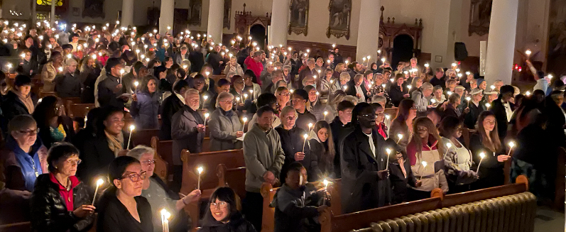 Contrairement à ce qu’on entend autour de nous, a fait remarquer Mgr Rodembourg, « l’Église n’est absolument pas en déclin. Elle est un cœur vivant depuis 2000 ans qui ne cesse de croître et de se renouveler de la jeunesse de Dieu. » Et ce cœur battait avec vigueur à l’occasion de Pâques, porté par l’acclamation joyeuse du choeur de la cathédrale, de la chorale Sion (espagnol), et d’une assemblée de centaines de personnes de tous âges et de toutes origines.